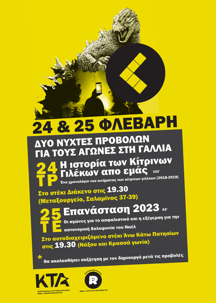 Τρίτη 24/2 στις 19:30 στο στέκι Διάκενο (Μεταξουργείο, Σαλαμίνος 37-39): «Η Ιστορία των Κίτρινων Γιλέκων Από Εμάς» (102′)