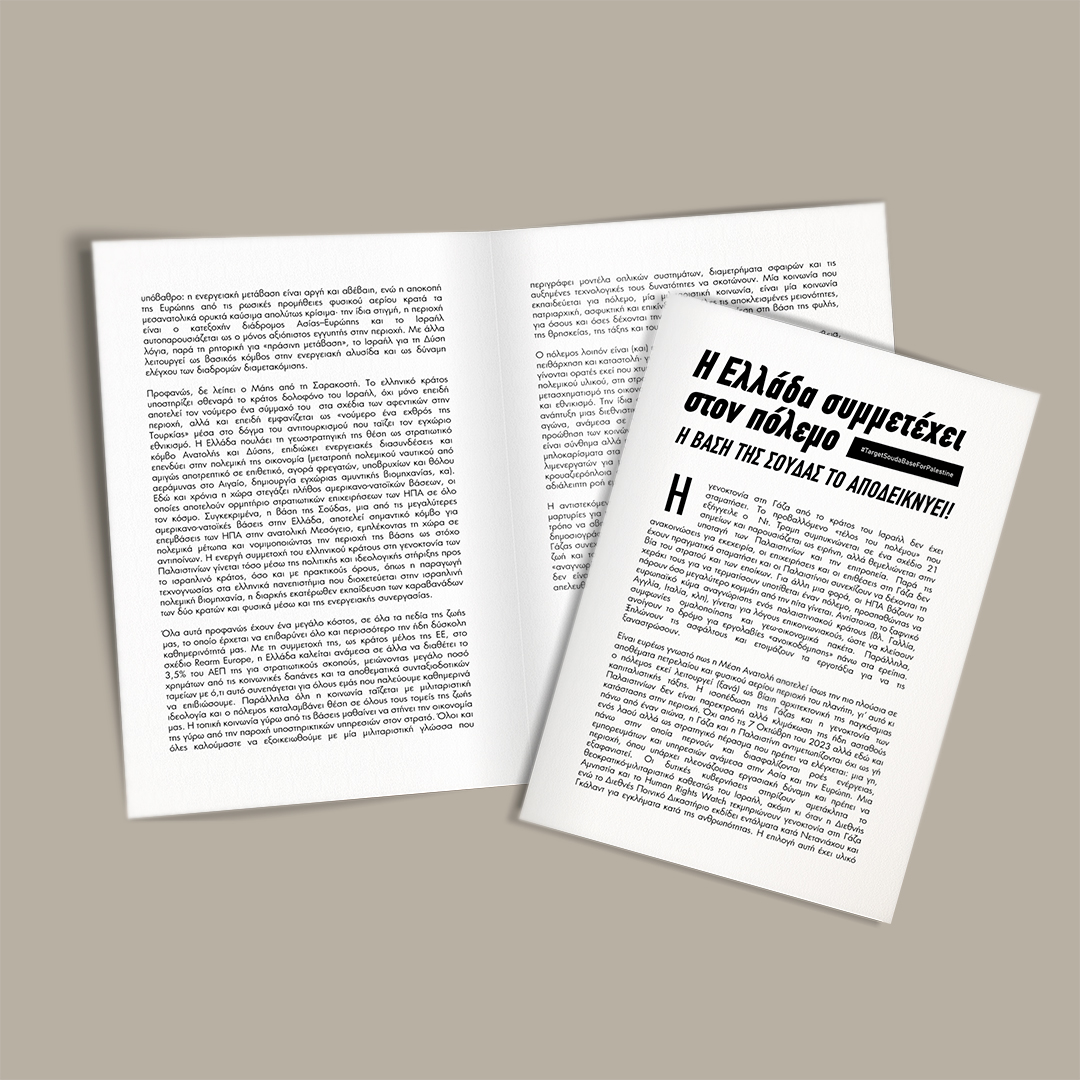 Μπλόκο στη συμμετοχή του ελληνικού κράτους στο σφαγείο στη Γάζα 19 Δεκεμβρίου, 202330 Δεκεμβρίου, 2024 ANTI-WAR/ΑΦΙΣΕΣ